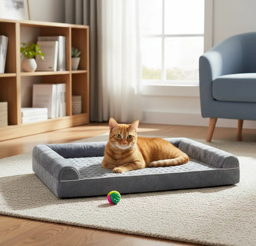 Le coussin chat orthopédique waterproof offre un soutien confortable grâce à un rembourrage moelleux pensé pour soulager les points de pression. La surface douce permet au chat de se relaxer naturellement, tout en profitant d’un espace spacieux adapté à la détente.